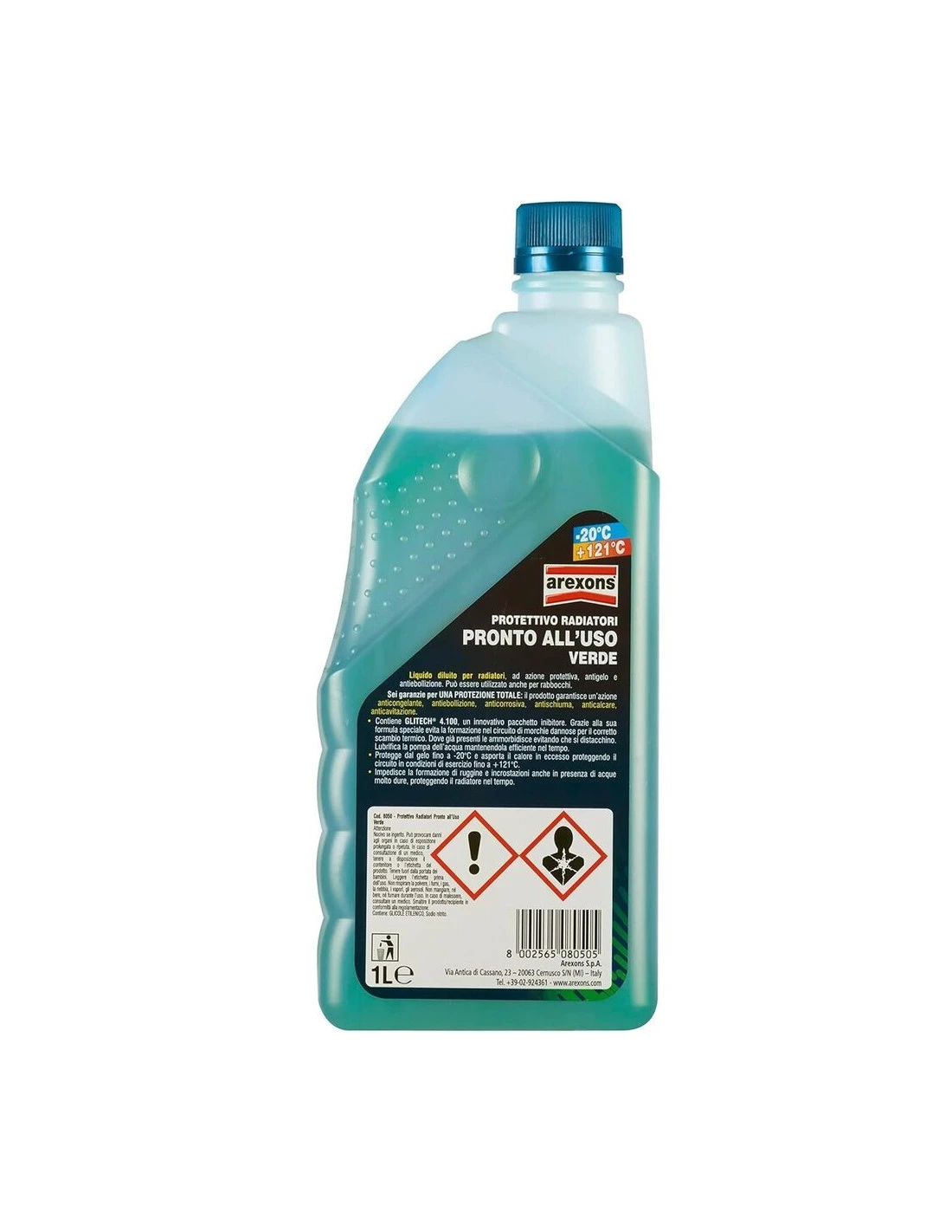 AREXONS Protettivo Radiatori -20°, Liquido Pronto all’Uso per Radiatori, Protezione Antigelo e Antiebollizione per Leghe di Alluminio, Miscelabile e Adatto a Rabbocchi, VERDE 1L