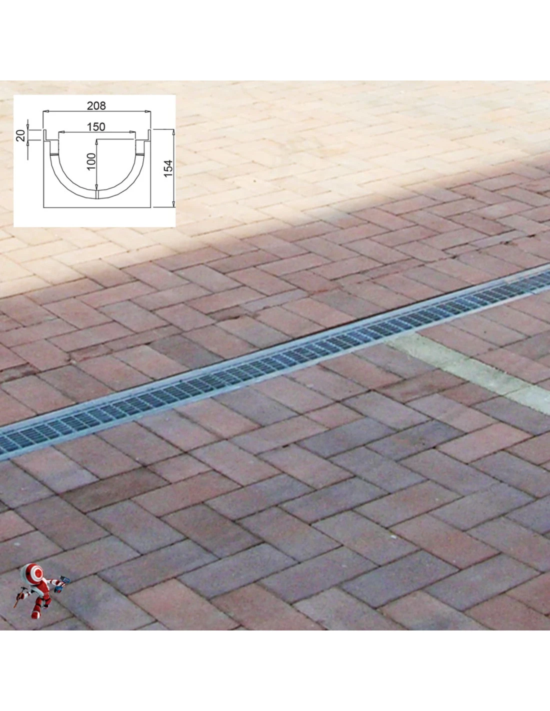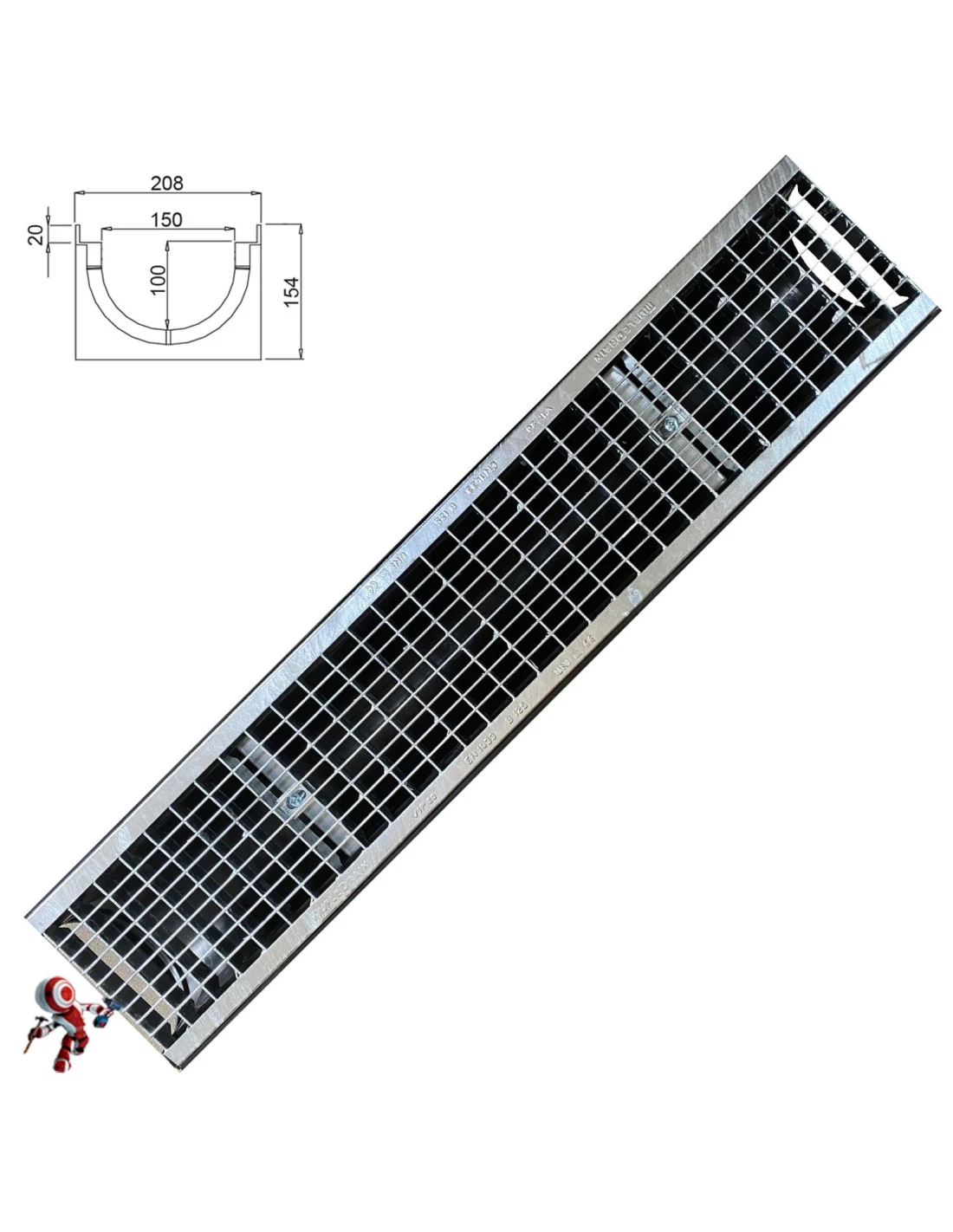 - Canaletta acqua piovana: Misure del canale (LxH): 208X154 mm – Lunghezza canale 100 cm (1 metro). NON E’ UN KIT. Il prezzo è riferito ad una sola canaletta con griglia e senza accessori