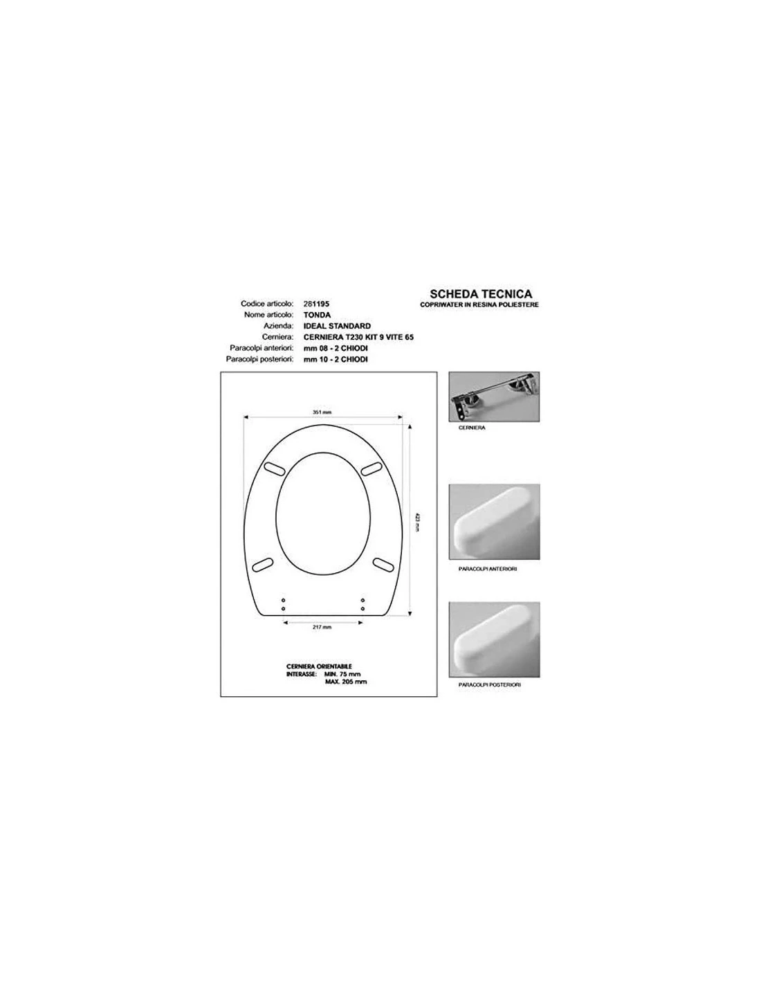 Copriwater coprivaso tavoletta sedile wc per Tonda Idea Standard