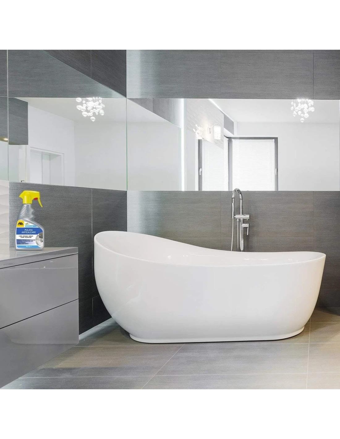 Pulizia a fondo di tutte le superfici del bagno: Questo prodotto è ideale per sanitari, rivestimenti, mosaici e rubinetterie, offrendo una soluzione completa per ogni elemento del bagno.