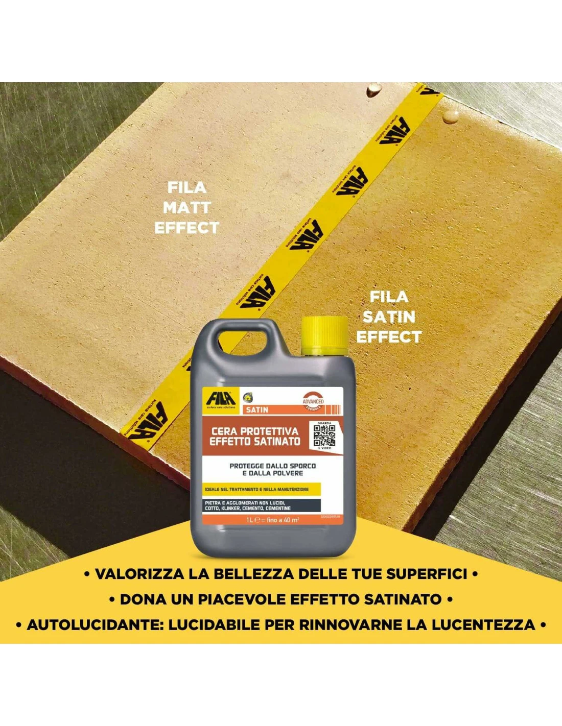 Cera protettiva effetto satinato, ideale nel trattamento e nella manutenzione. Protegge le pietre naturali non lucidate (calcari, ardesie…), il gres rosso, il klinker non vetrificato e vari tipi di cotto. Consigliata nel trattamento di pavimenti in: slate (ardesia), pietre ricostruite e cementine. Trova impiego ideale nella manutenzione di marmi e pietre naturali con finitura spazzolata.