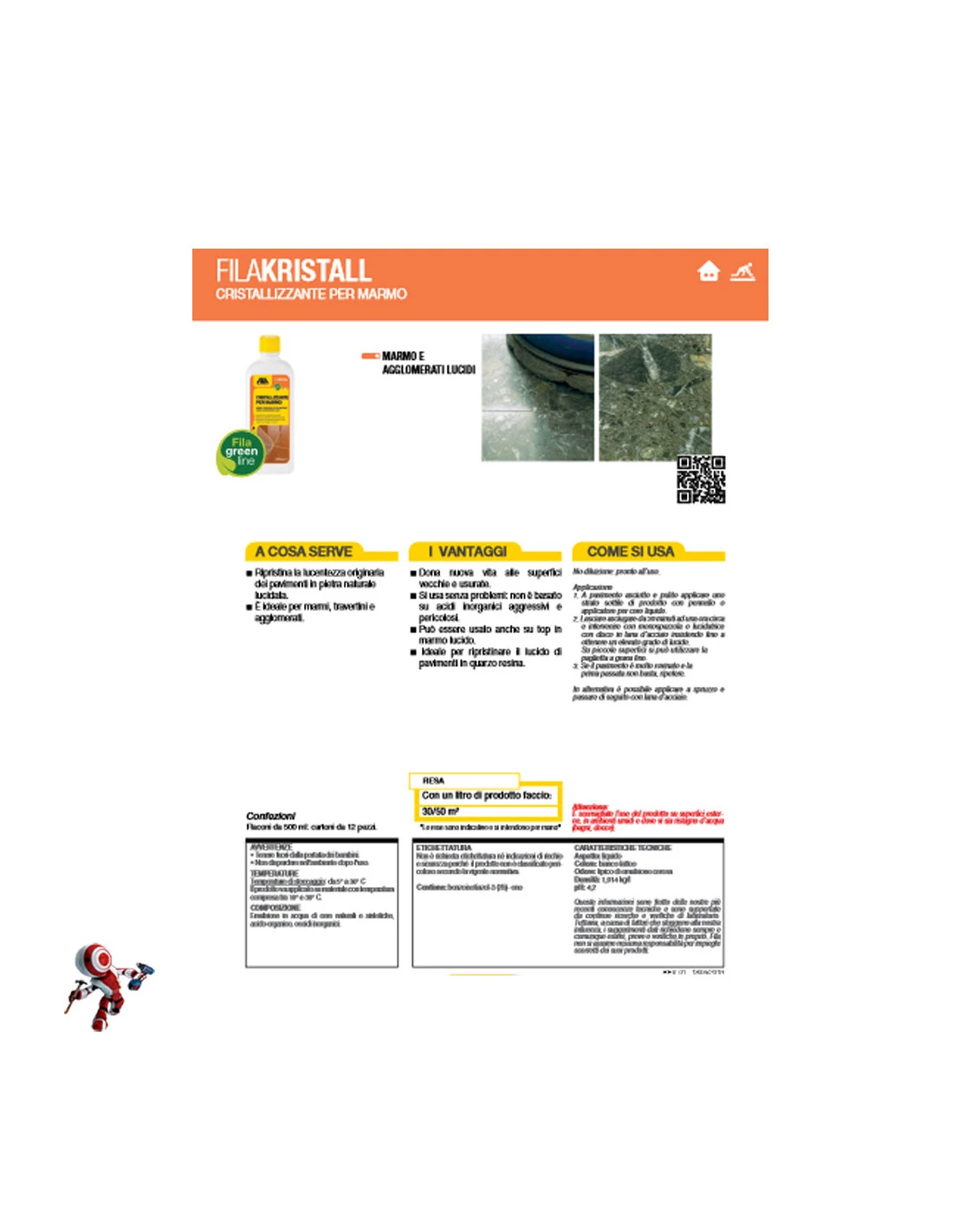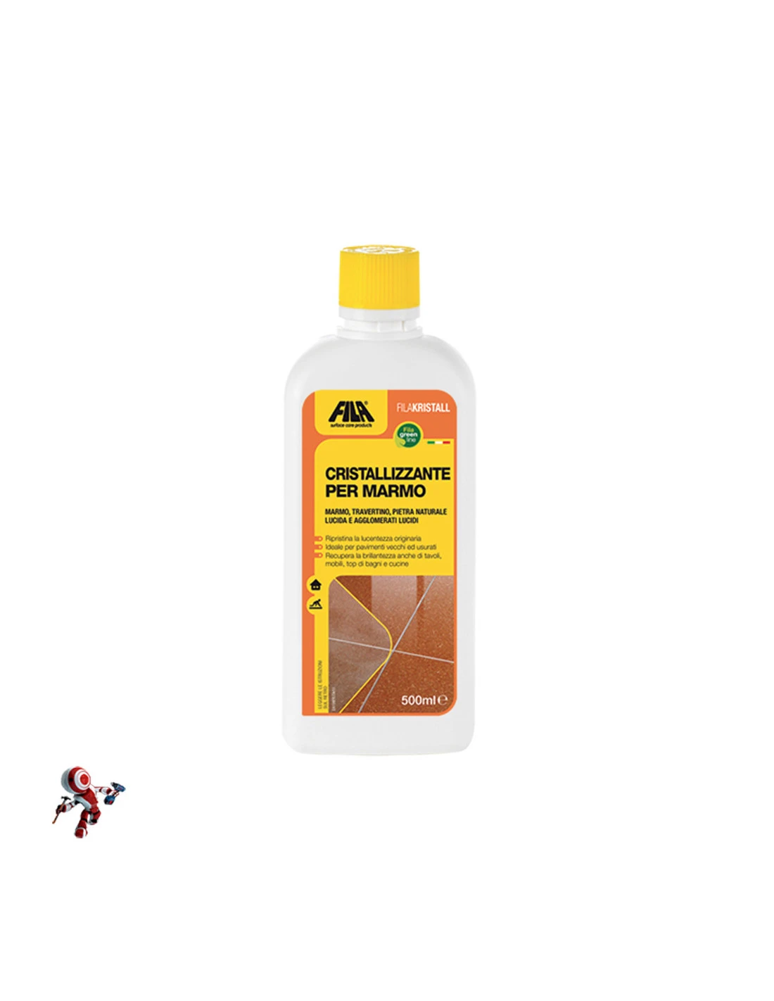 Cristallizzante per marmo, ripristina la lucentezza originaria dei pavimenti in pietra naturale lucidata. Ideale per marmi, travertini e agglomerati.