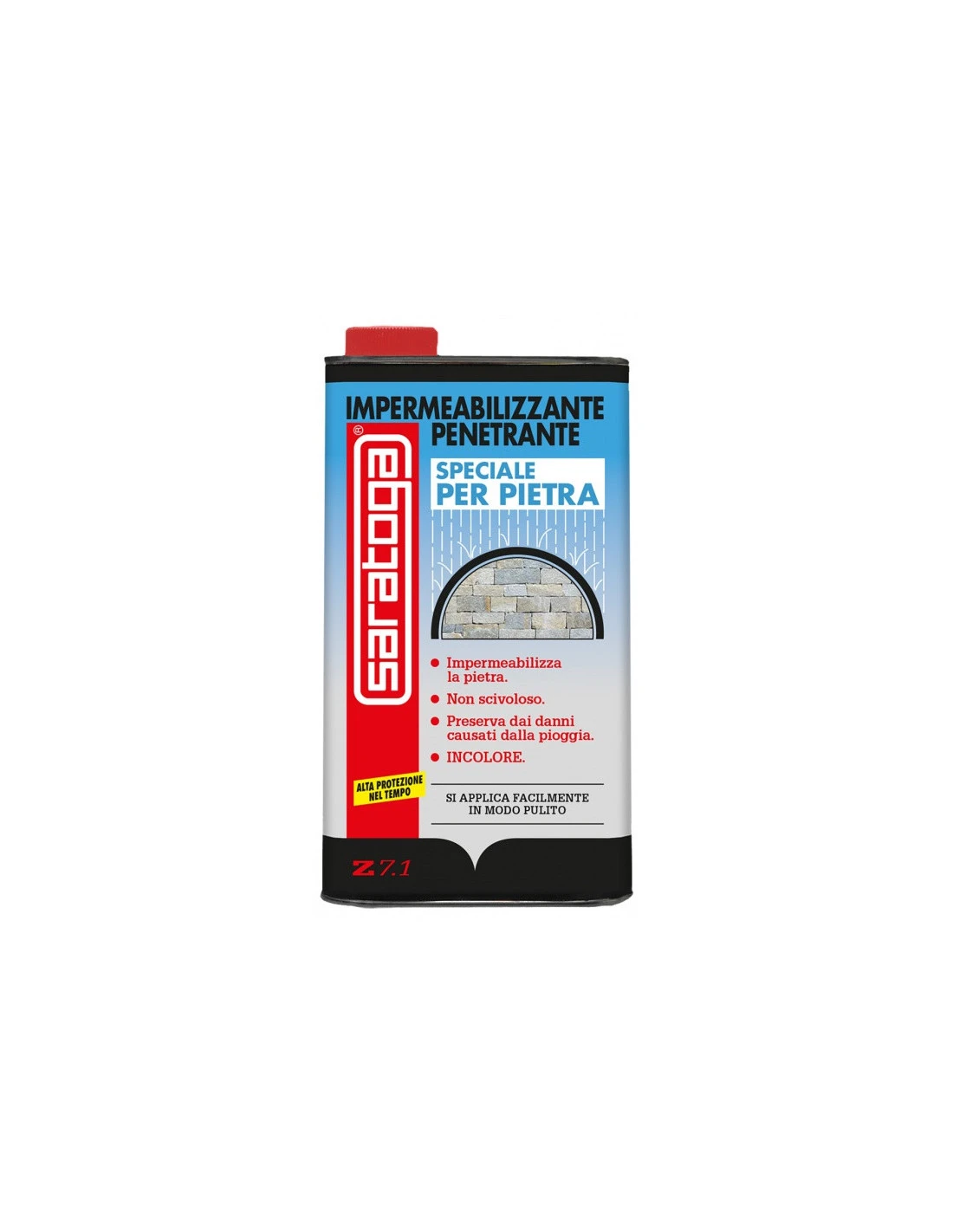 Saratoga Z7.1 Impermeabilizzante Penetrante Speciale per Pietra impermeabilizza la pietra; penetra in profondità creando una barriera invisibile all’acqua piovana, senza che abrasioni, rigature o danneggiamenti superficiali possano intaccarne l’impermeabilità. Calpestabile, non scivoloso, ideale per esterni, adatto anche per interni. Le superfici trattate sono completamente traspiranti. Si applica facilmente e conferisce alta protezione nel tempo.