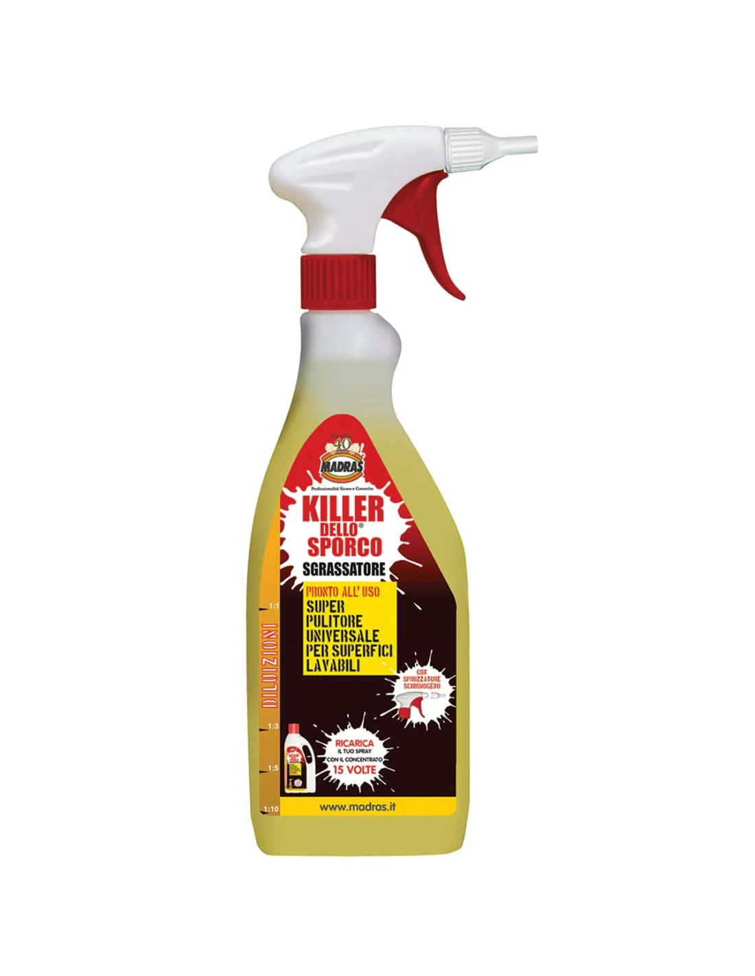 - Ultraconcentrato: Diluire sempre prima dell’uso, dotato di spruzzatore schiumogeno per pulizie verticali.