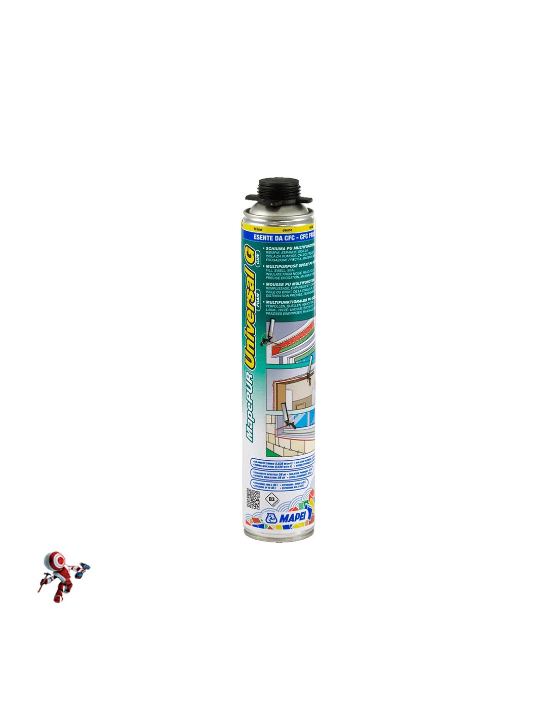 Che cos’è MapePUR Universal Foam? MapePUR Universal Foam è una schiuma poliuretanica monocomponente per isolamento e riempimento in edilizia.