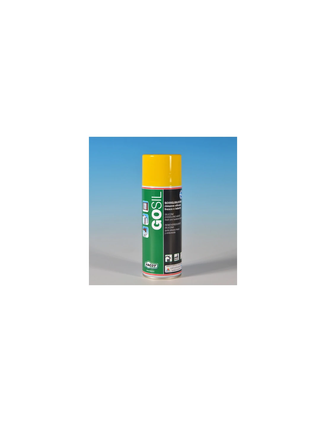 Silicone indurito: Raschiare il più grosso con una lametta, spruzzare e lasciare agire Go-sil per alcuni minuti. Indi asportare con uno straccio.