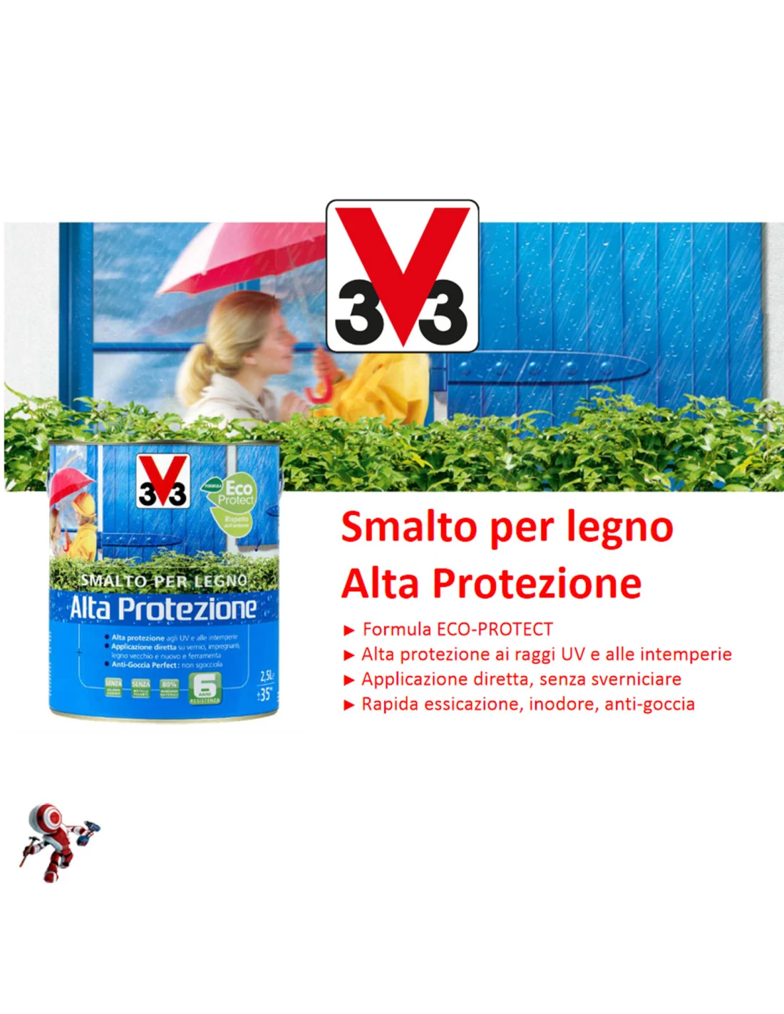 Lo smalto per legno V33 protegge e decora le superfici in legno, offrendo una finitura durevole e resistente agli agenti atmosferici.